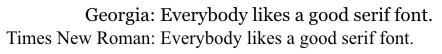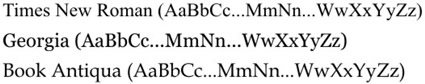Examples of serif fonts include Times New Roman, Georgia, and Book Antiqua.
