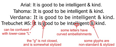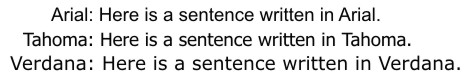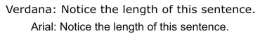 Another advantage of Verdana is that the spacing between letters. One consideration to take into account with Verdana is that it is a relatively large font. The words take up more space than words in Arial, even at the same point size.