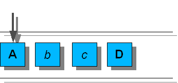 UndoManagermaintains an ordered list of edits and the index of the next edit in that list. The index of the next edit is either the size of the current list of edits, or ifundohas been invoked it corresponds to the index of the last significant edit that was undone. Whenundois invoked all edits from the index of the next edit to the last significant edit are undone, in reverse order. For example, consider anUndoManagerconsisting of the following edits: A b c D. Edits with a upper-case letter in bold are significant, those in lower-case and italicized are insignificant.