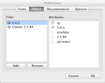 To create and remove documentation filters, select Edit > Preferences > Filters.